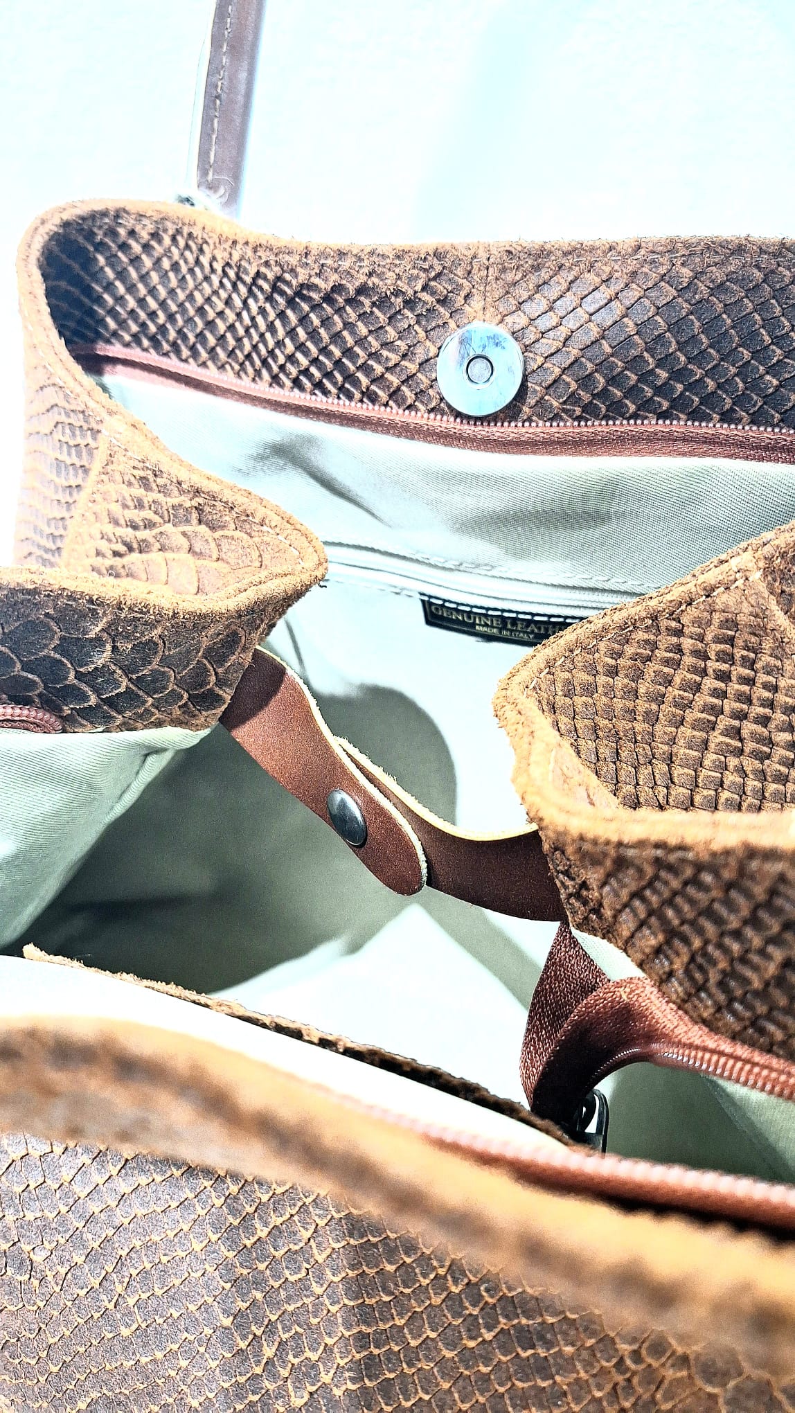 Elegante borsa a spalla in pelle pitonata, perfetta per chi cerca un accessorio raffinato e distintivo. La texture pitonata dona un tocco di esclusività, mentre la pelle morbida garantisce comfort e durata. Ideale per completare con classe ogni outfit, dal giorno alla sera.