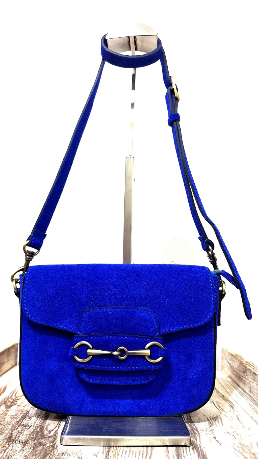 Questa borsa in pelle effetto camoscio unisce eleganza e raffinatezza, arricchita da un'applicazione in metallo che ne esalta il design particolare. Perfetta per completare con stile ogni outfit, offre una texture morbida e un tocco di classe senza tempo.