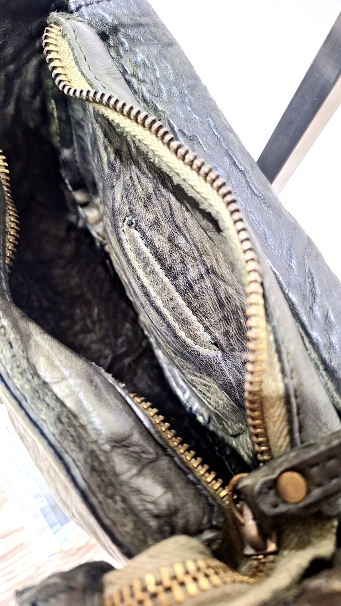Questa borsetta in cuoio verde militare unisce stile e praticità in un formato compatto. Realizzata con pelle di alta qualità, offre una texture raffinata e una resistenza duratura. Perfetta per chi cerca un accessorio originale che valorizzi ogni outfit con discrezione e stile.