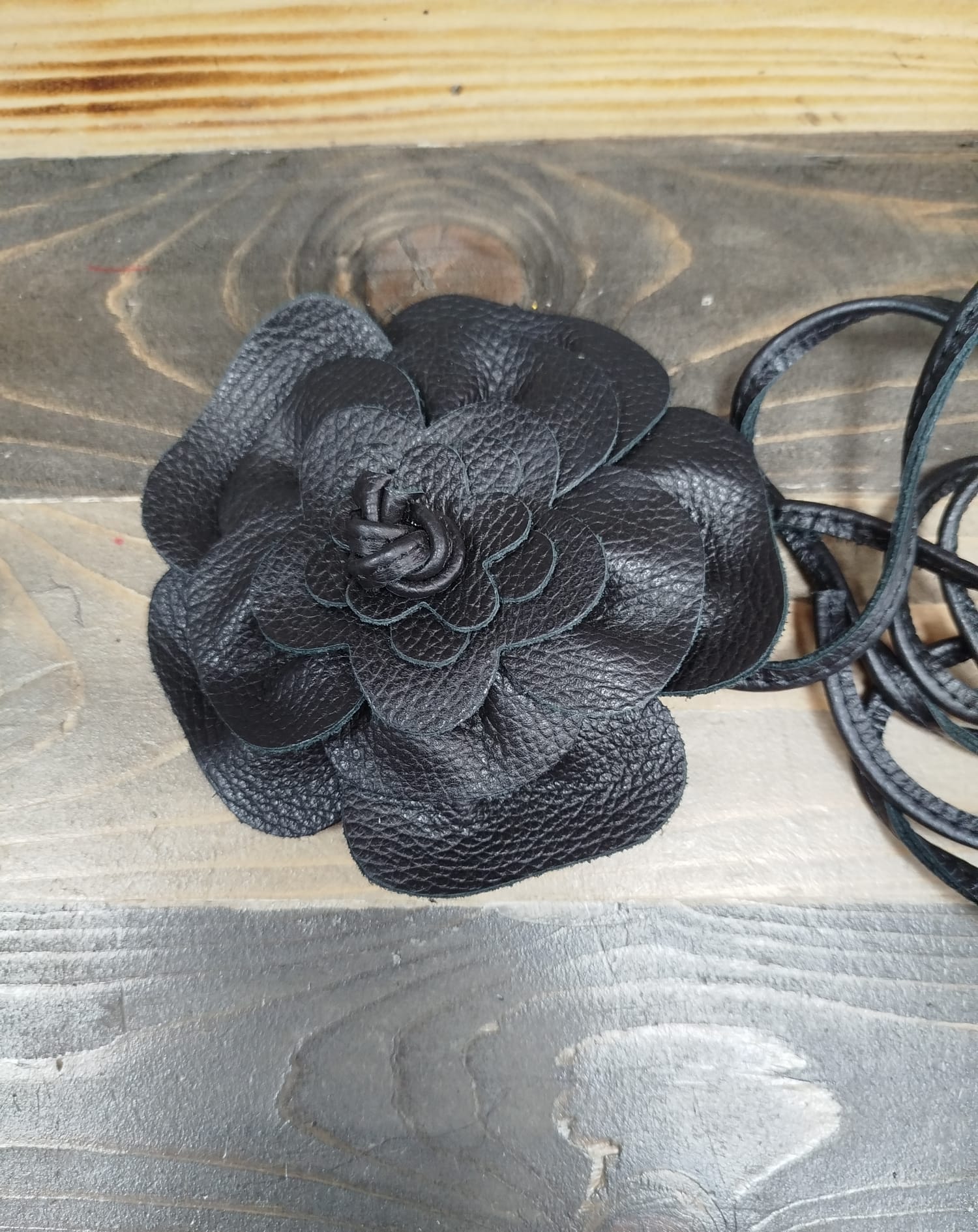 Originale e sfiziosa, questa cintura in pelle martellata con motivo a fiore è l’accessorio ideale per arricchire ogni outfit.