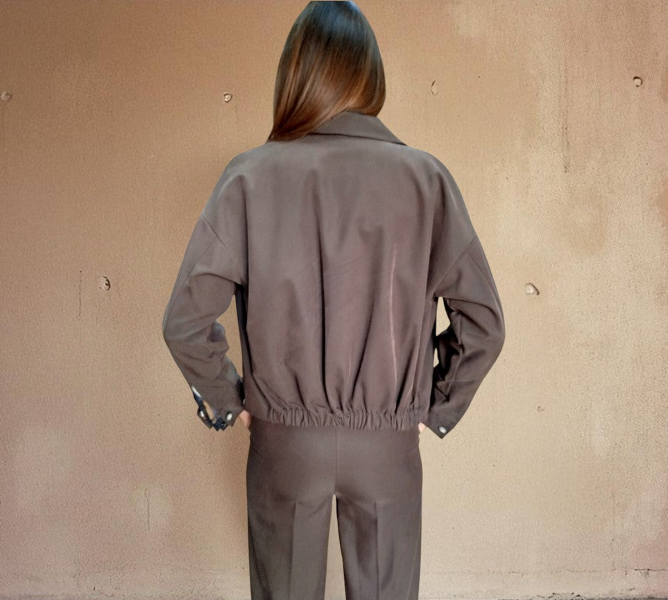 Giubbino con zip unisce praticità e stile in un capo versatile, perfetto per affrontare le giornate con comfort e semplicità.