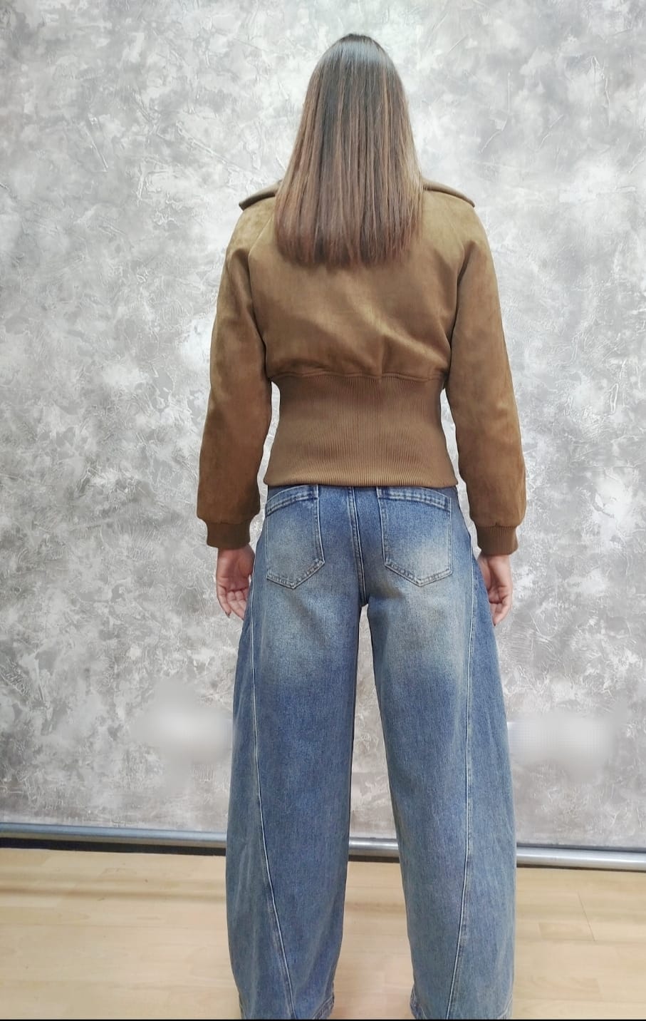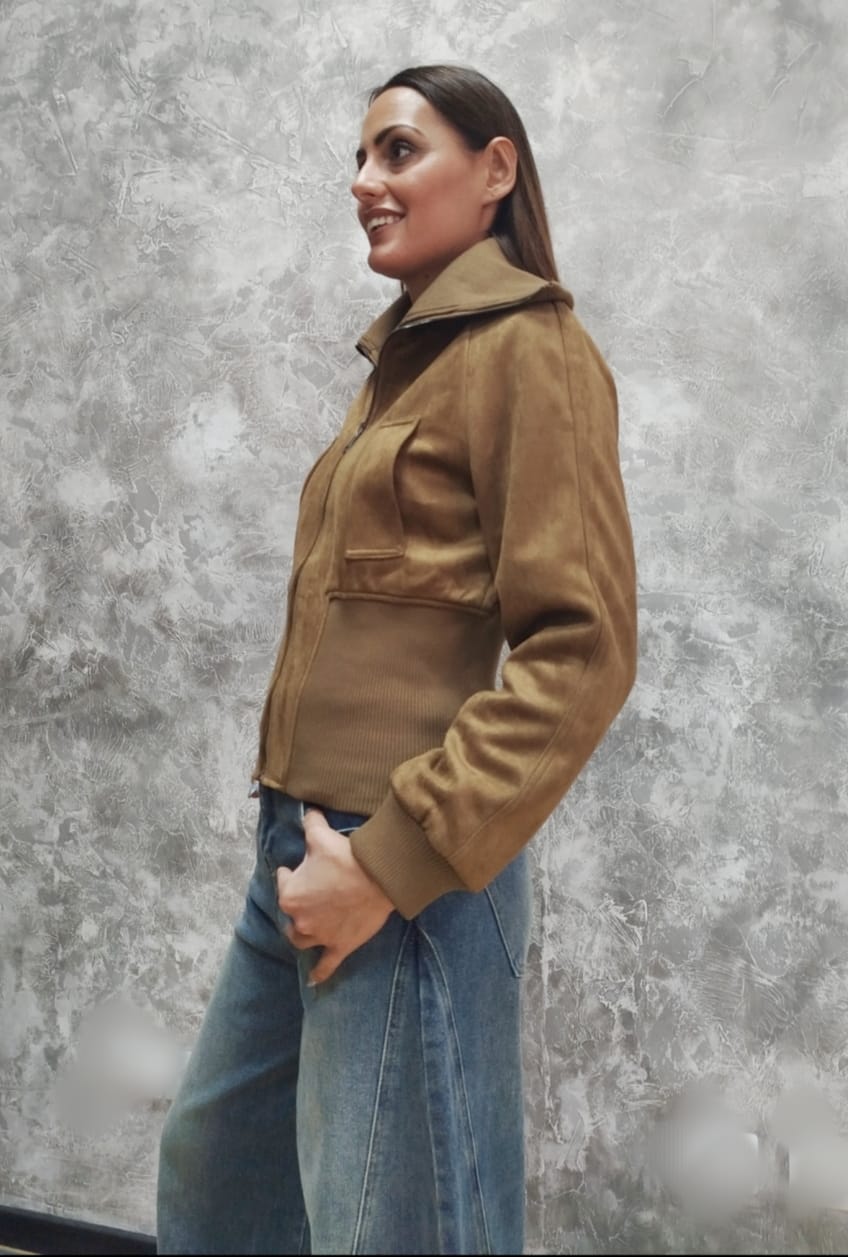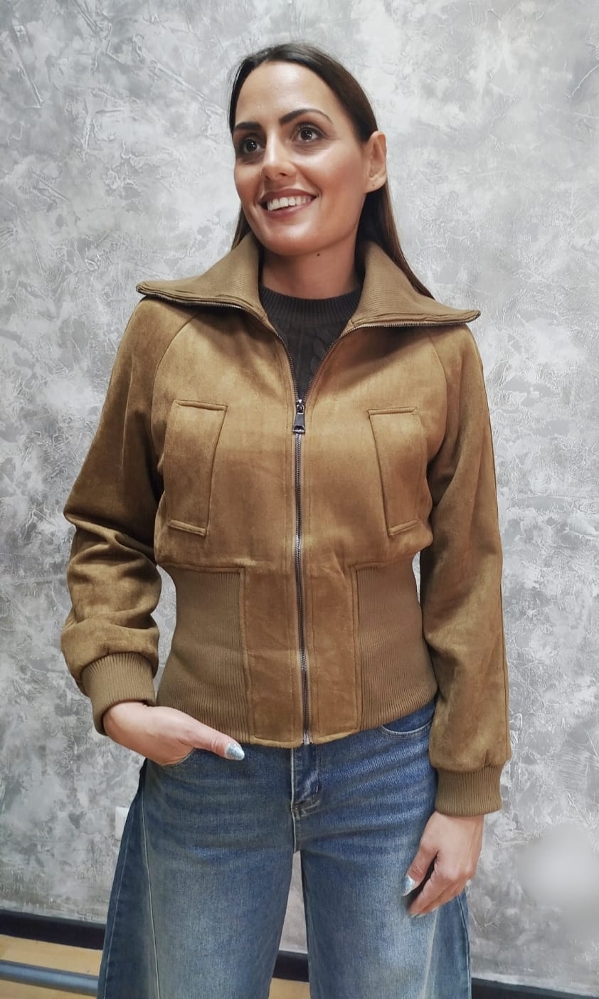 Giubbino effetto scamosciato, un capo avvitato dal fascino senza tempo. Il collo avvolgente garantisce calore e comfort, mentre il design intramontabile si adatta perfettamente a qualsiasi stile.