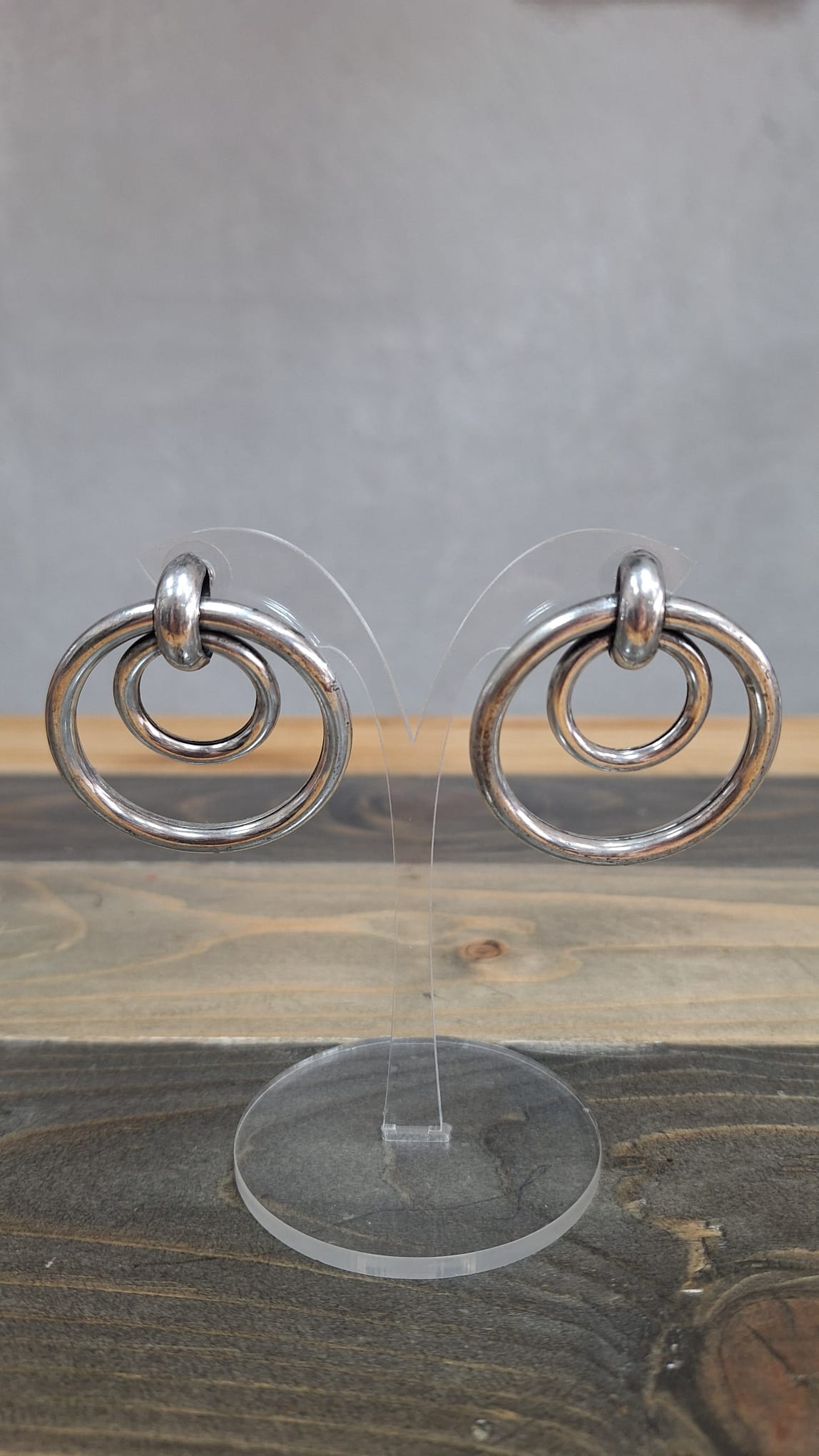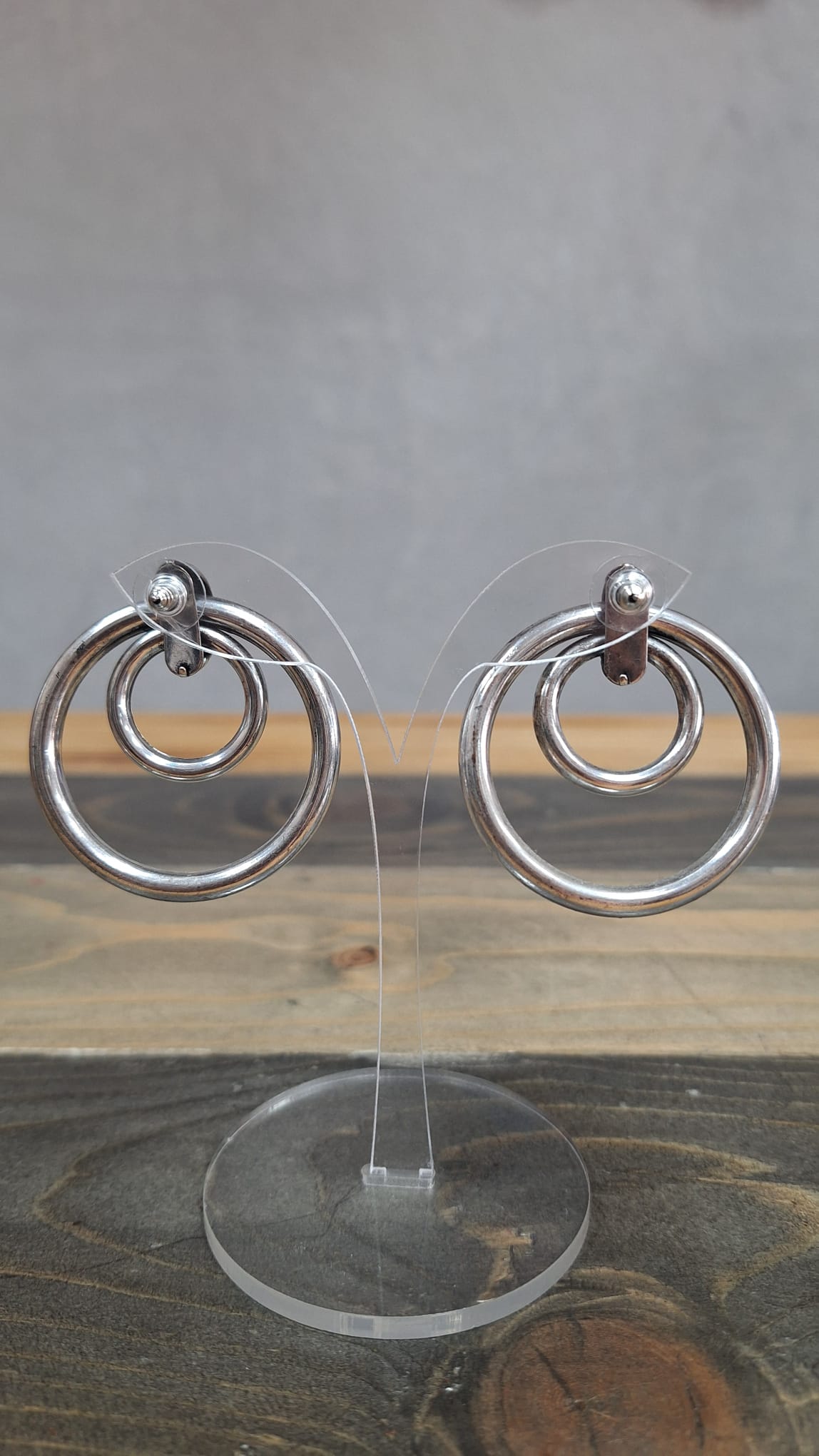 Orecchini con doppio cerchio dal design elegante e contemporaneo, ideali per chi ama uno stile raffinato e distintivo. La sovrapposizione armoniosa delle forme crea un effetto di leggerezza e movimento, perfetto per valorizzare ogni outfit con un tocco di sofisticatezza discreta. Un accessorio versatile e di classe.