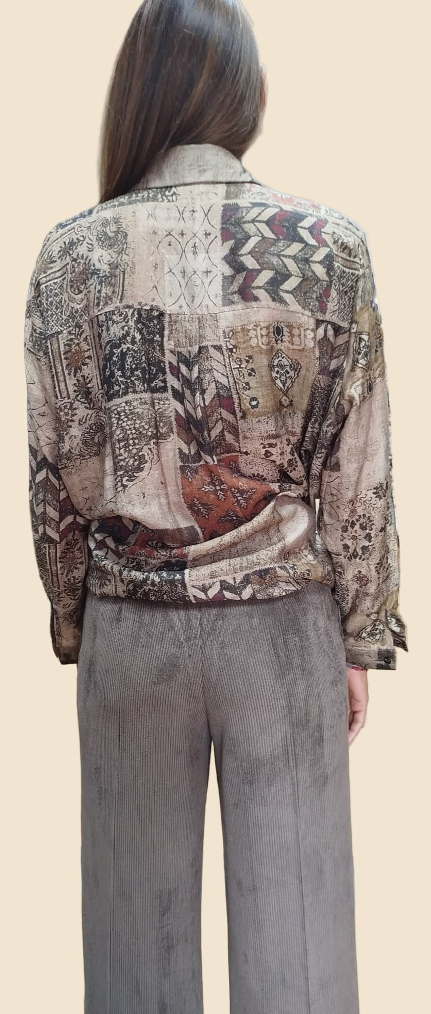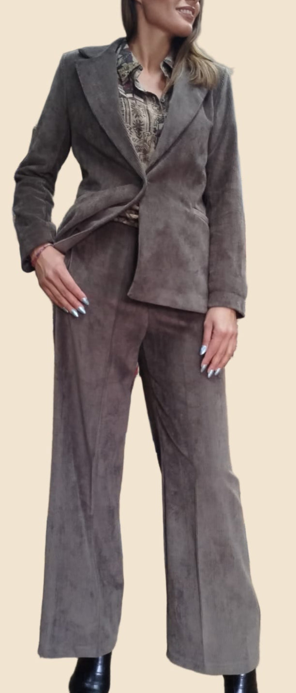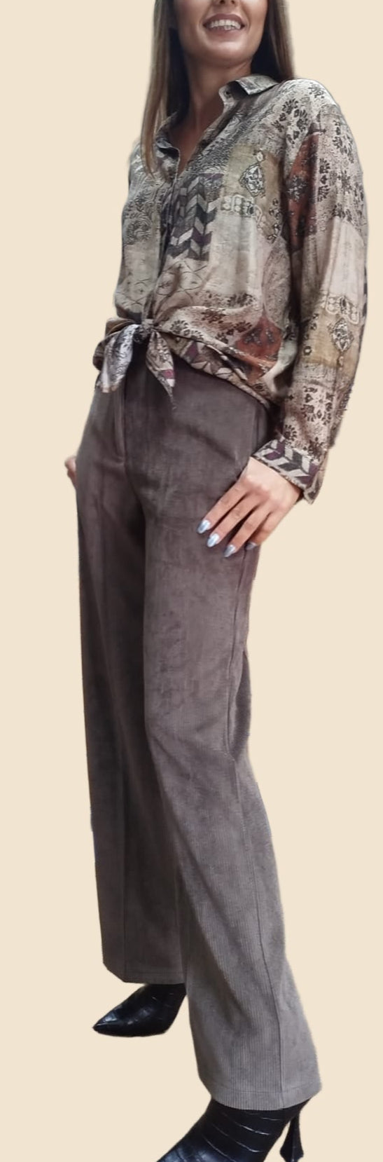 Pantaloni palazzo a millerighe dal taglio ampio che valorizza la figura, si adattano facilmente a diverse occasioni, garantendo sempre libertà di movimento e sofisticatezza.